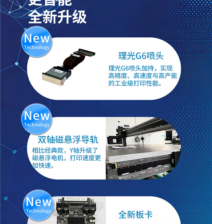 越達(dá)最新上市2513高速磁懸浮打印機(jī),機(jī)器采用全新總線控制設(shè)計(jì),能夠完美滿足多噴頭下的高精度打印需求。打印速度高達(dá)200㎡/h,產(chǎn)能是普通款的3倍以上,在打印板材木紋方面,效果更為突出。
